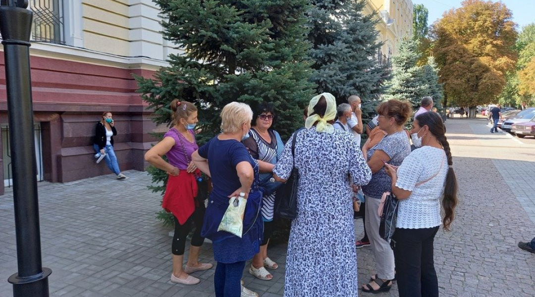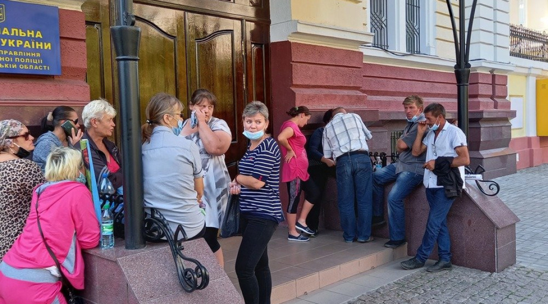 Годиною раніше пікетувальники стояли під обласною прокуратурою з плакатами «ДП «Степове» в біді - невідомі збирають наш урожай», «Ні рейдерському захопленню землі в с. Степове», «Почуйте нас!».
