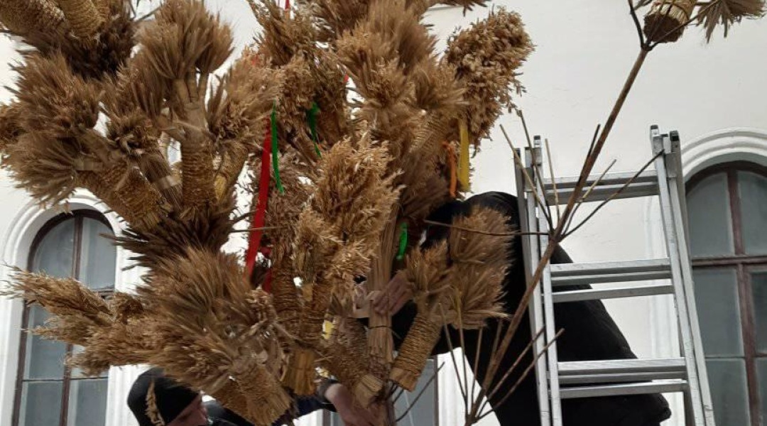 Майстри Музею народної архітектури та побуту ім. К. Шептицького виготовили головний дідух Львова. Цього року його висота сягає 4 метри, тоді як в попередні роки була 3.