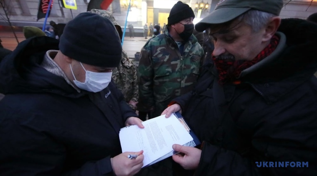 На завершення акції її організатори передали письмове звернення до керівництва ГУ Нацполіції в Харківській області з вимогою надати оцінку словам Авакова. Звернення прийняв начальник Управління превентивної діяльності полковник Сергій Бірбасов.