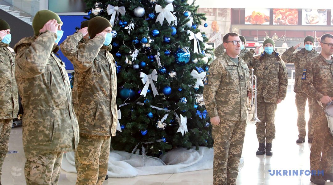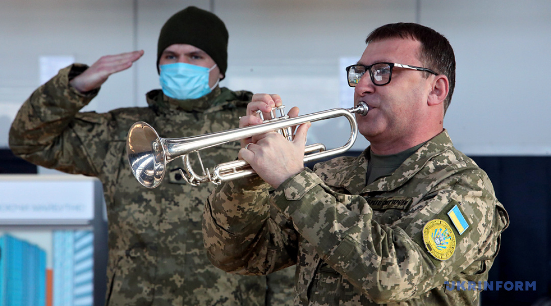 Акція відбулася у будівлі терміналу. Через карантинні обмеження участь у акції взяли тільки два музиканти: трубач та барабанщик оркестру цього вишу. Військовослужбовці, які прибули з ними, стали поряд у почесному караулі.