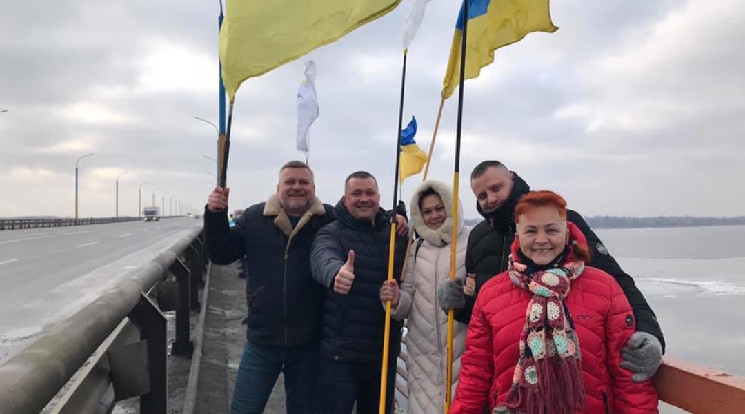 Херсонці до Дня Соборності створили ланцюг єдності на мосту через Дніпро/ Фото Оксани Погомій