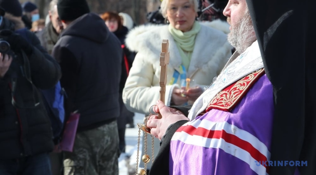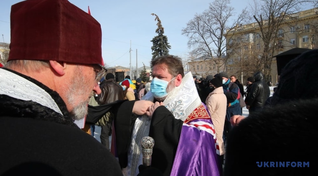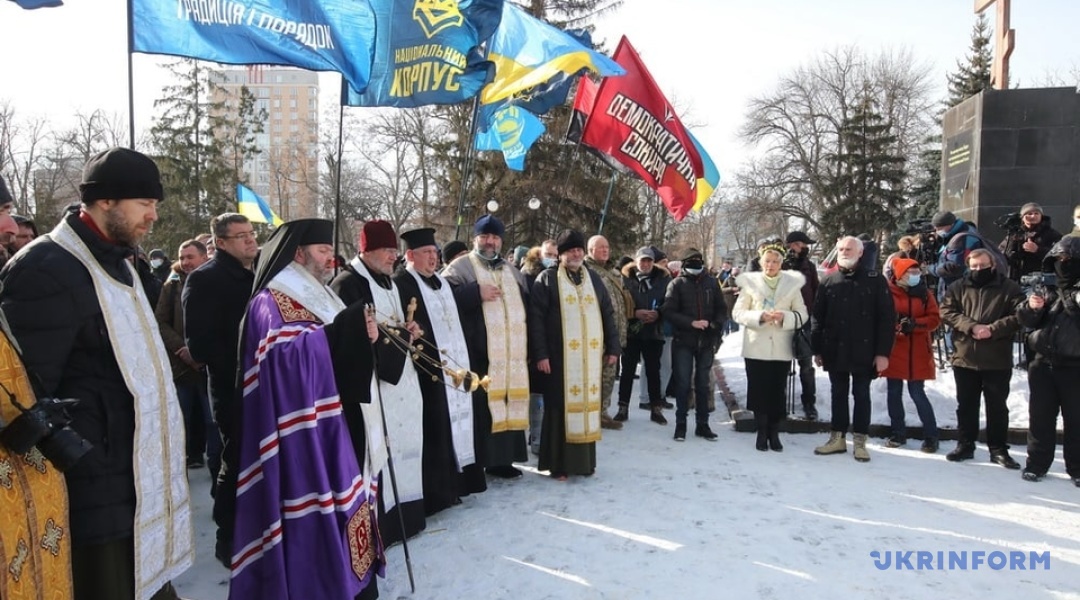 На площі відслужили панахиду представники духовенства на чолі з єпископом Харківським та Богодухівським Митрофаном. До присутніх звернувся настоятель храму Св. Іоана Богослова о. Віктор (Маринчак), відомий як духівник харківського Євромайдану. "Ми перемогли й завжди перемагатимемо, бо рабів до раю не пускають!" - сказав він.