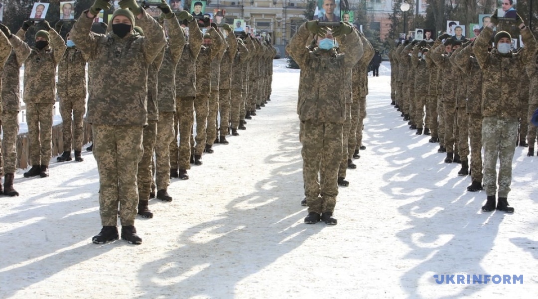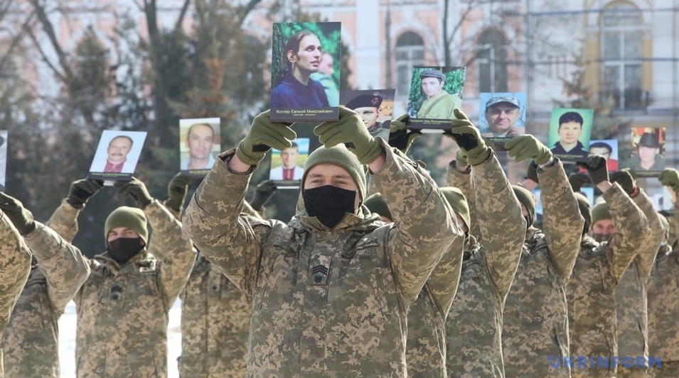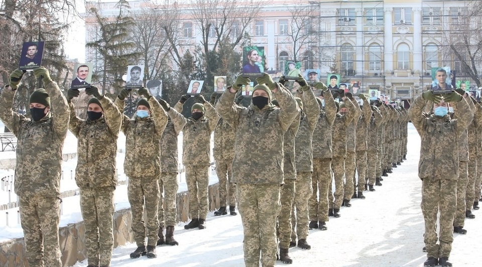 У Харкові курсанти з портретами героїв Небесної сотні вишикувались у журавлиний клин