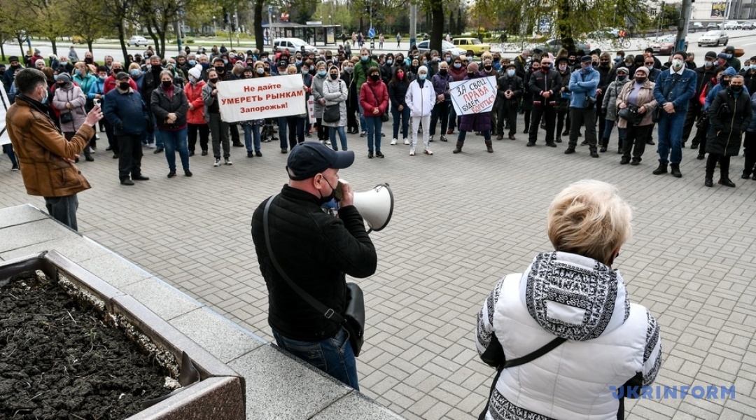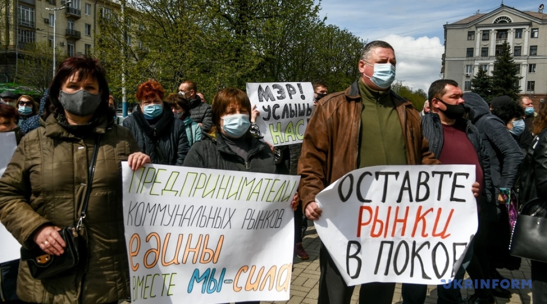 "Сьогодні ми зібралися під мерією, щоб зустрітися з міським головою Володимиром Буряком. Ми хочемо, щоб він пояснив нам, чому директором КП "Запоріжринок", до якого входить 8 запорізьких ринків, призначений Олег Коломоєць. Ця людина не компетентна, вона не розуміє, як працює підприємство. Після його призначення на ринках стали з'являтися якісь дивні озброєні люди. Ми виходили на мітинг 26 квітня, передали звернення меру, ініціювали створення робочої групи, але нас не хочуть чути і з нами не хочуть зустрічатися", - говорить організатор акції, підприємець "Центрального ринку", член комітету при КП "Запоріжринок" Максим Чорний.