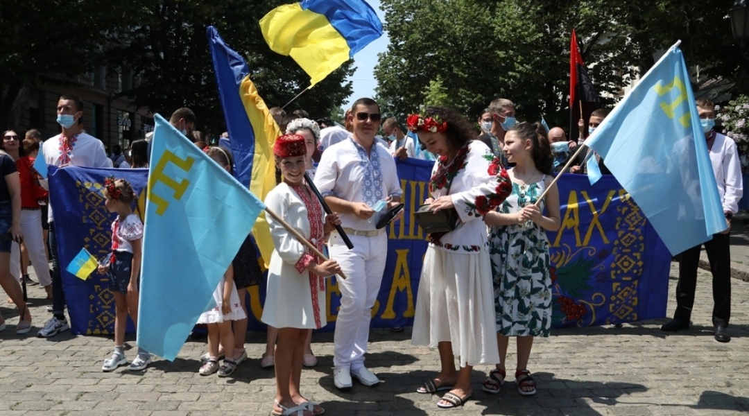 Як повідомляв Укрінформ, у Києві вулицею Хрещатик відбулася хода на честь Дня кримськотатарського прапора. Учасники акції несли вулицею великий кримськотатарський прапор. В ході взяв участь голова Меджлісу кримськотатарського народу Рефат Чубаров.