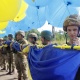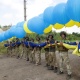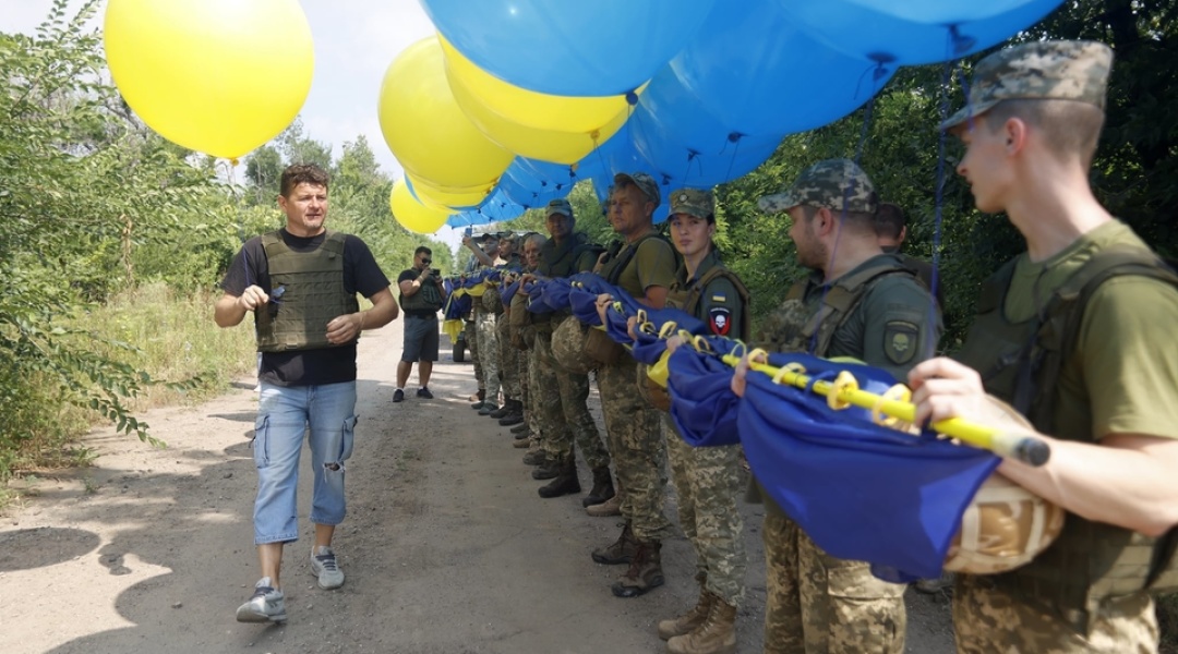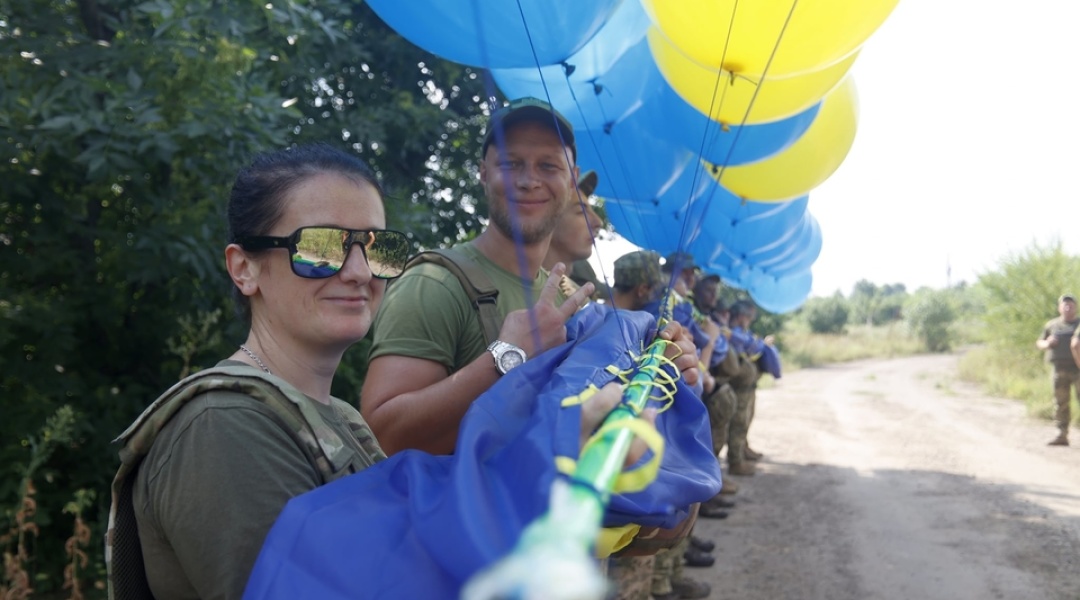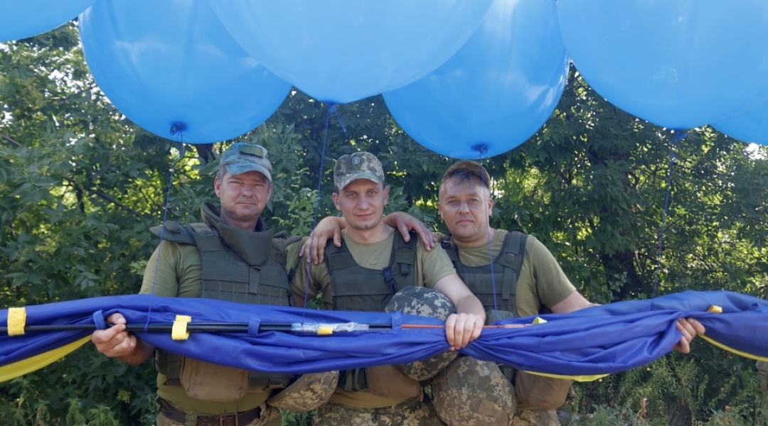 Український прапор підняли в небо на жовтих і блакитних повітряних кульках.