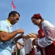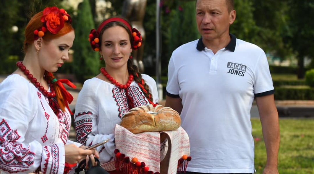 Зустріч проходила біля скульптури першому олімпійському чемпіону серед борців Якову Пушкіну, повідомляє кореспондент Укрінформу.