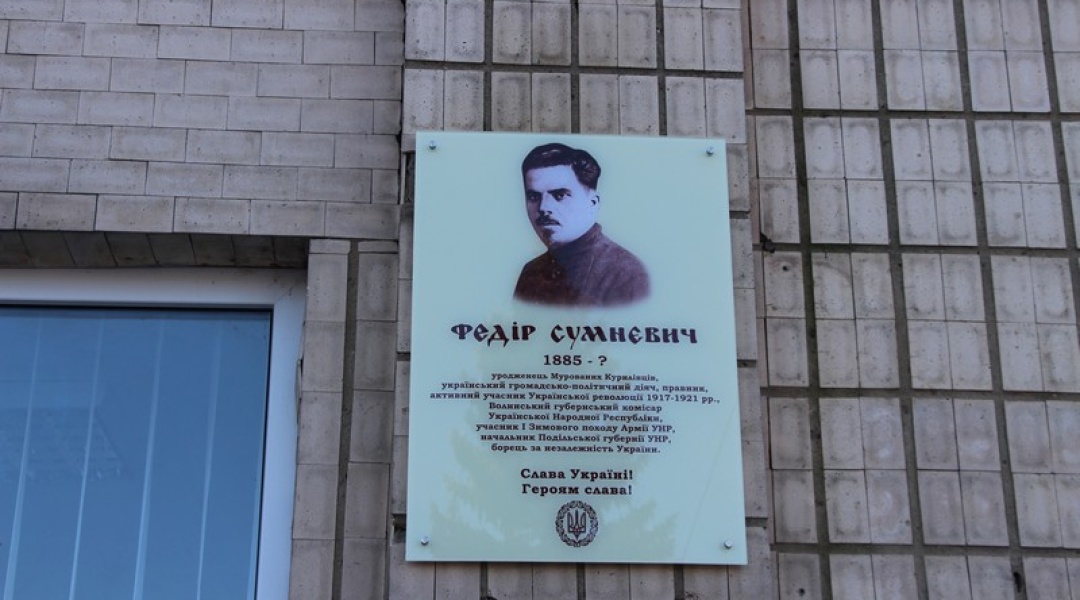 «Напередодні відзначення 103-ї річниці Соборності України в селищі Муровані Курилівці, що на Могилів-Подільщині, 20 січня було відкрито пам'ятний знак українському громадсько-політичному діячеві часів Української Народної Республіки, начальнику Подільської губернії (посада тотожна по функціях нинішній посаді «голова облдержадміністрації») Федору Сумнєвичу. Вшанували ж його пам`ять в Мурованих Курилівцях саме тому, що він народився в цьому селищі», - йдеться у повідомленні.