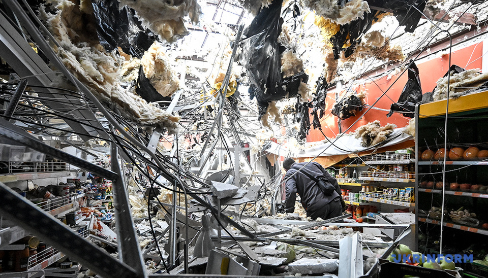 Внаслідок влучання дрона знищений торговельний центр, який працював тут з початку повномасштабної війни.