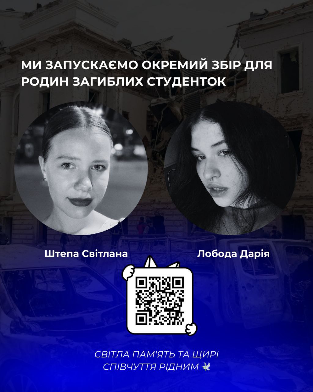 “Серед числа загиблих унаслідок подвійного ракетного удару є дві студентки навчально-наукового медичного інституту СумДУ”, - йдеться в дописі.