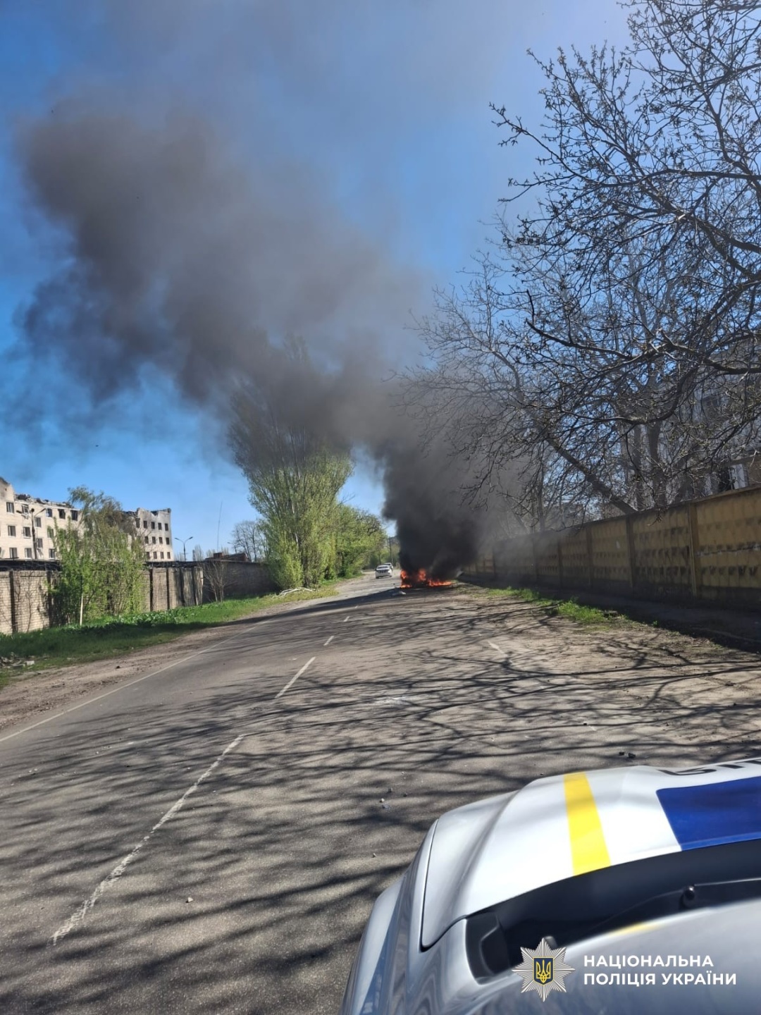 Зазначається, що внаслідок удару по автівці постраждали батько із сином. Батько загинув на місці. Пораненого хлопця соціальні працівники доставили до лікарні і передали медикам.