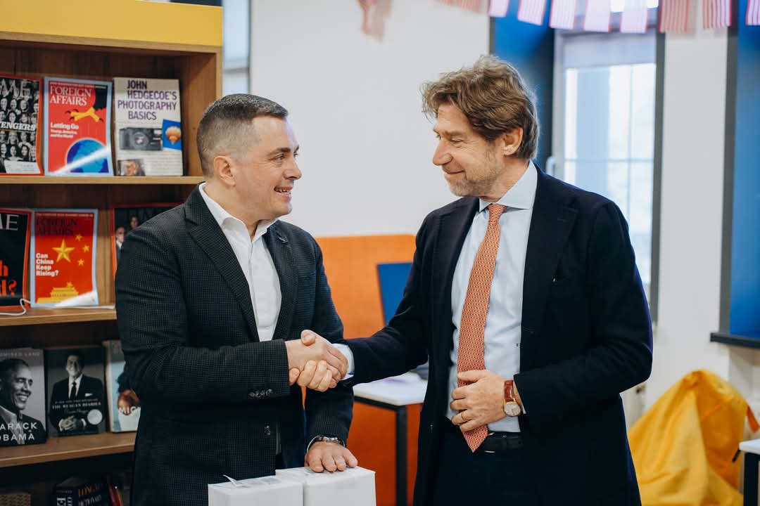 Дипломат відвідав київську філію університету, який було переміщено до столиці після окупації Донецької області російськими військами, разом із директором Італійського інституту культури Карло Колонеллою.