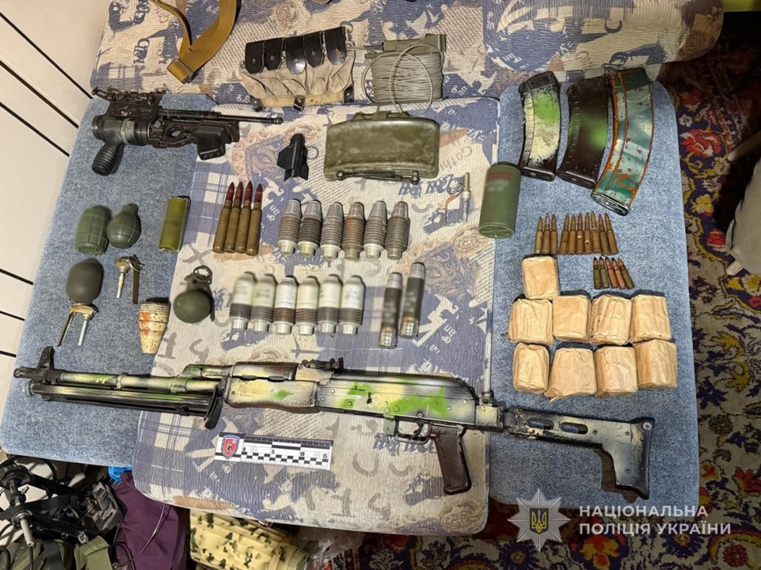 Під час обшуку за місцем мешкання затриманого вилучили кулемет, гранатомет та 14 пострілів до нього, 6 гранат, 4 підривачі, протипіхотну міну, підривну магістраль дистанційної дії, а також майже 400 набоїв різного калібру та орден з нацистською символікою. Все вилучене направили на експертні дослідження.