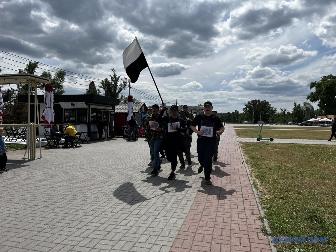 Акція вперше проходила під новим державним символом – «Прапором Надії». Як сказала військова волонтерка, організаторка забігу Стелла Орел, віднині чорно-білий стяг буде на кожному заході.