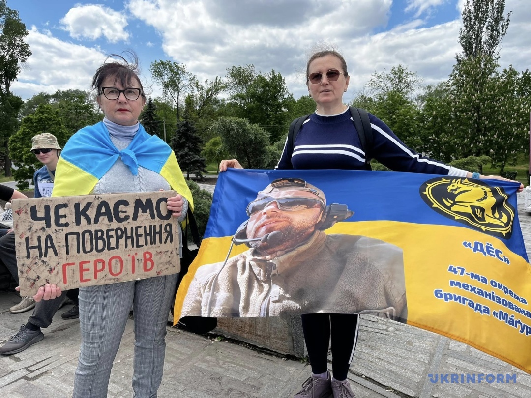 Учасники тримали в руках прапори з фотографіями рідних, їхніми позивними, іменами та прізвищами, назвами підрозділів, де ті служили.