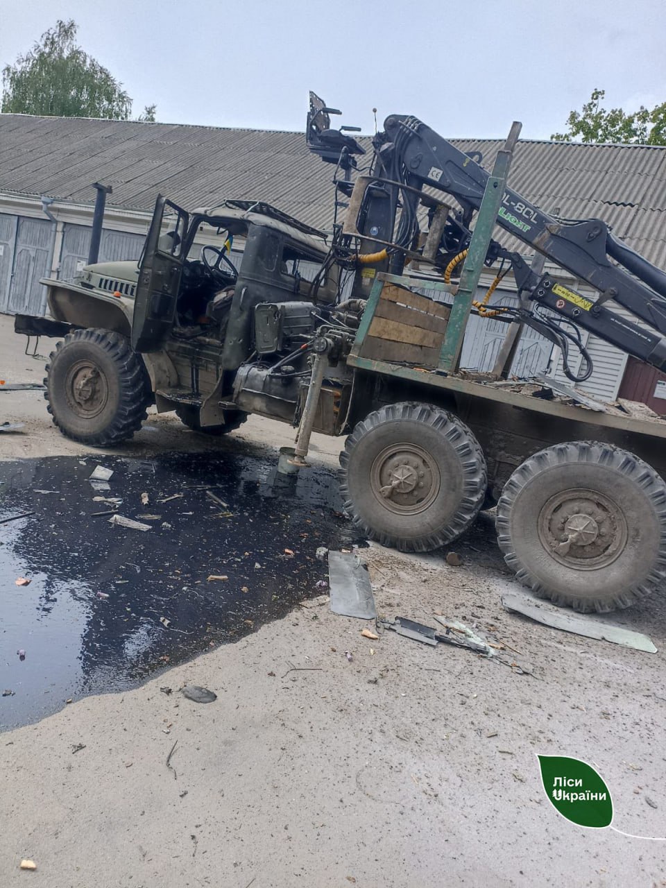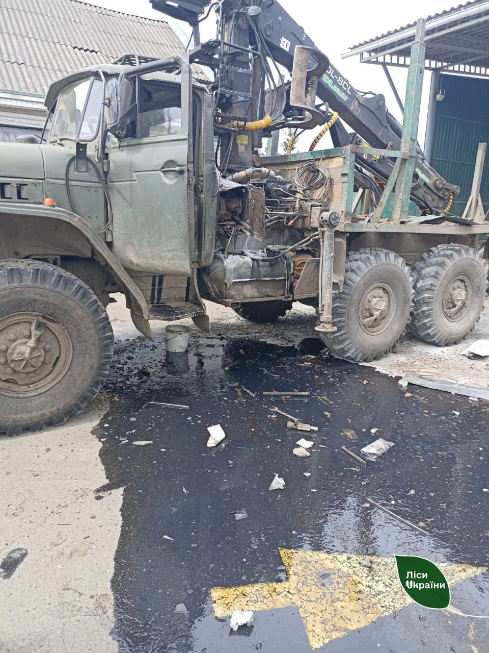 "У Сумах зафіксовано влучання дрона в транспортний засіб Сумського надлісництва ДП "Ліси України". Інцидент стався у момент, коли водій відійшов від машини за автозапчастинами. Це, ймовірно, врятувало йому життя", - йдеться в повідомленні.
