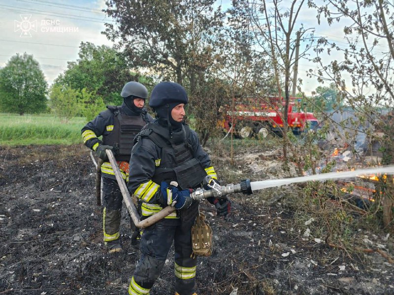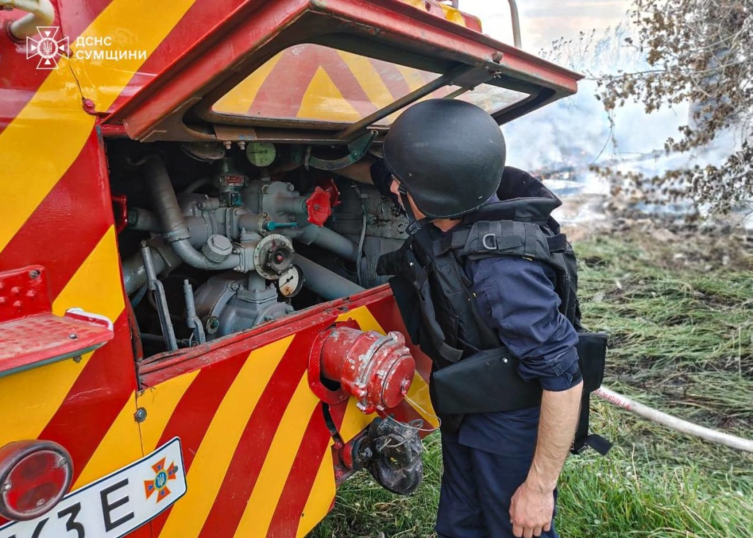 На Сумщині рятувальники ліквідували пожежу після ворожого обстрілу