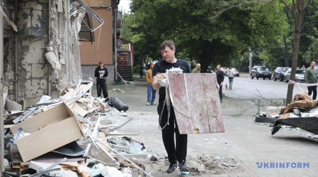 В Дніпровському районі уламки збитого дрона пошкодили житлове приміщення, поранили цивільного.