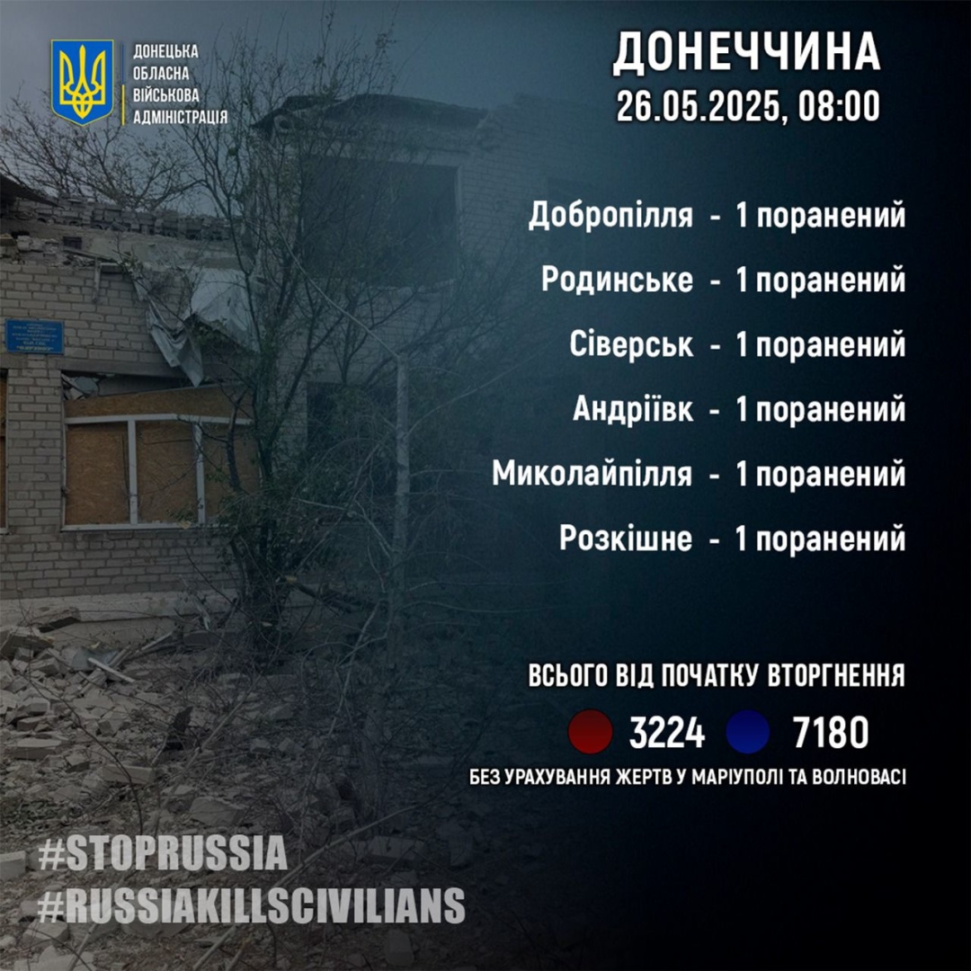 За його словами, 25 травня росіяни поранили шістьох жителів Донеччини.