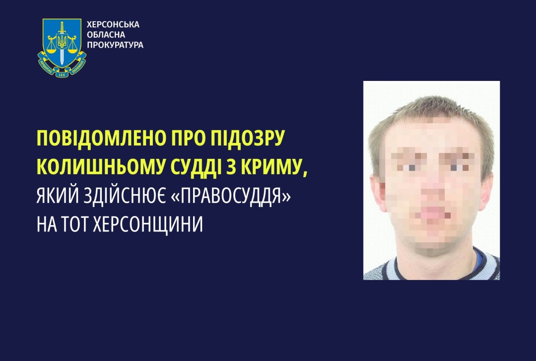 «За процесуального керівництва Херсонської обласної прокуратури заочно повідомлено про підозру колишньому судді Джанкойського районного суду АР Крим за фактом зайняття посади в незаконно створеному судовому органі (ч. 7 ст. 111-1 КК)», - йдеться у повідомленні.