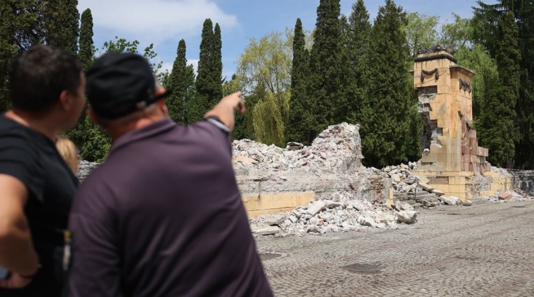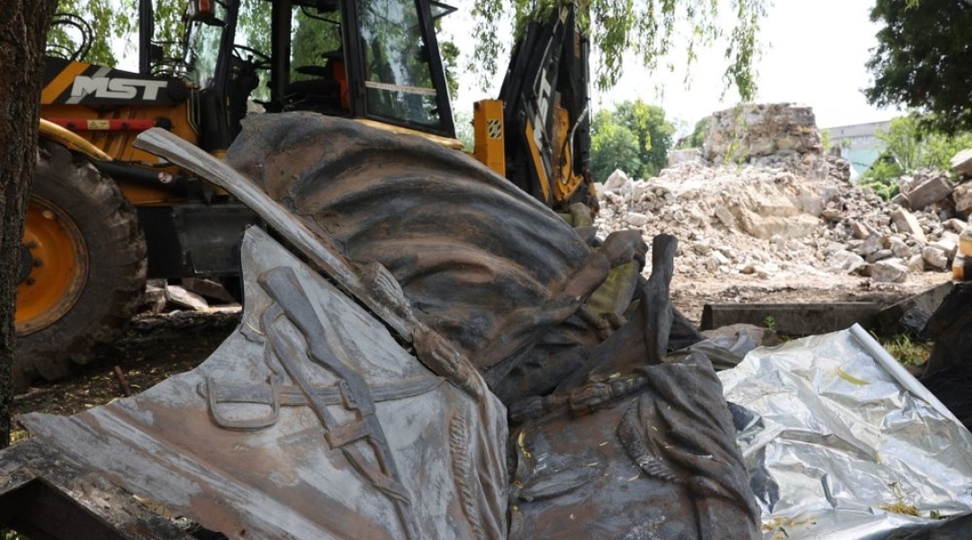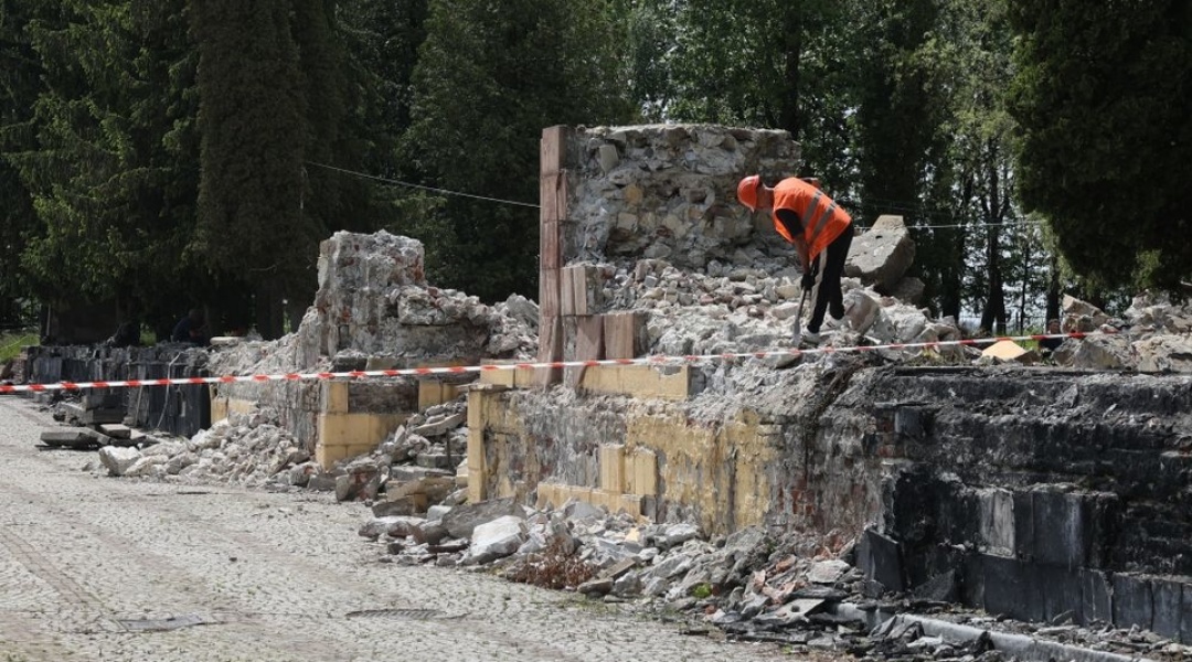 «Загалом тут вже демонтовано надмогильні споруди і покриття доріжок між могилами. А сьогодні знесли другу вхідну колону. Вони були облицьовані плитами пісковику – їх відділяємо від цегли та перевозимо на зберігання. Металеві гірлянди, що були на колонах та паркані, переносимо до музею «Територія терору». Так само експозицію музею терору поповнить і конструкція «вічного вогню», - розповів Богайчик.
