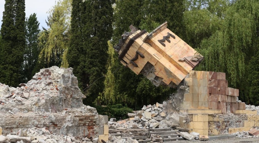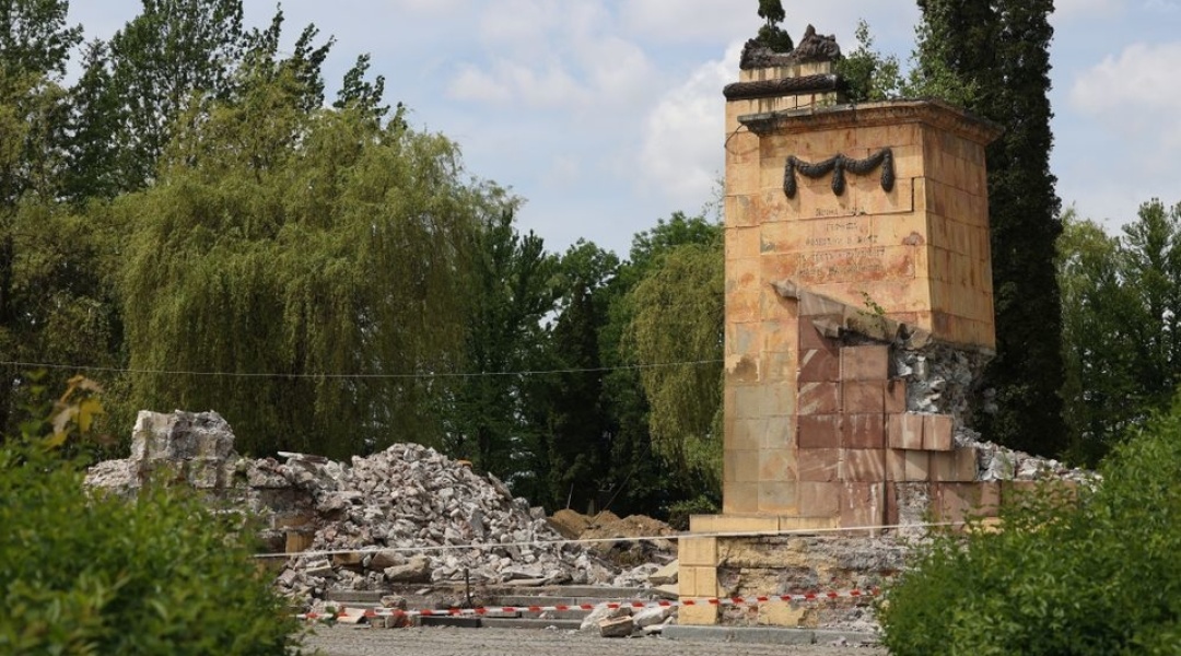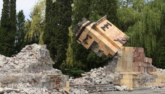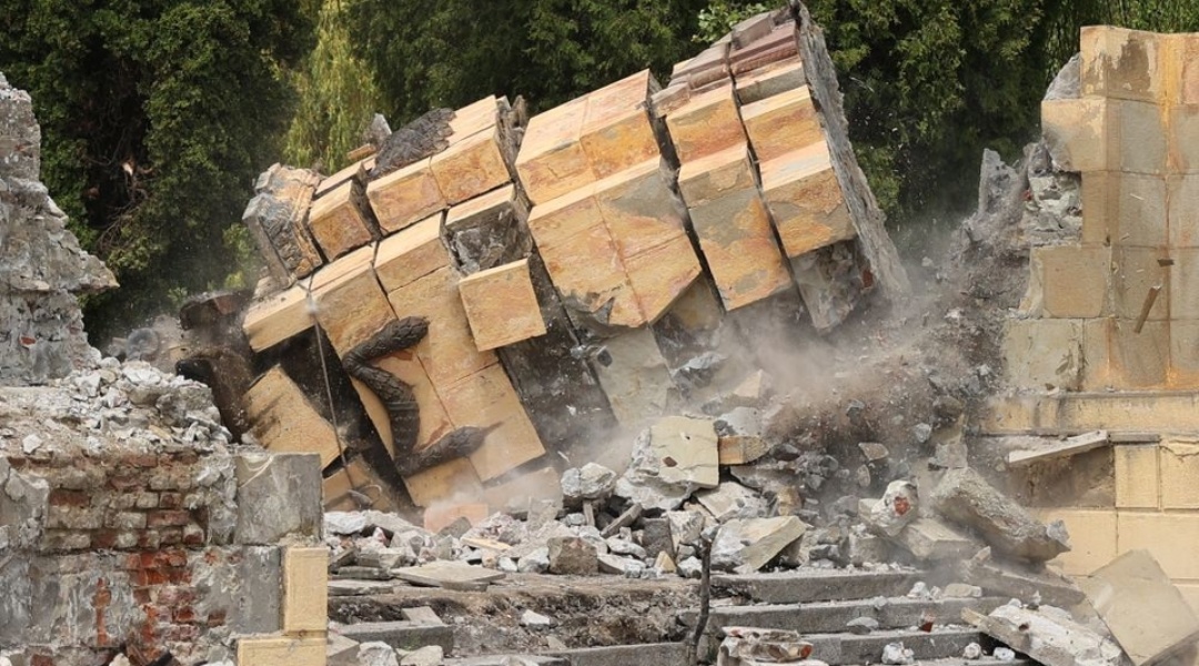 З Пагорба Слави у Львові демонтували другу вхідну колону / Фото: Львівська міська рада