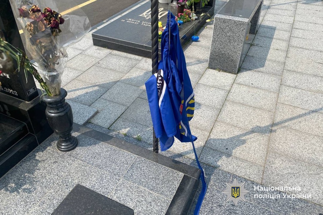 На місце події виїхала слідчо-оперативна група Черкаського районного управління поліції. Правоохоронці виявили пошкоджені прапори із символікою підрозділу поліції, встановлені на місцях поховання загиблих бійців.