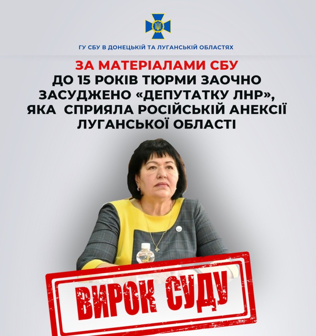 «Депутатку ЛНР», яка сприяла окупації Луганщини, засудили до 15 років в'язниці з конфіскацією