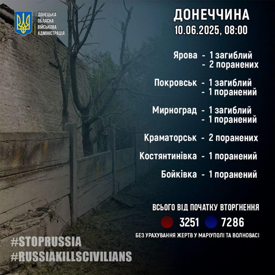 За його словами, росіяни вбили трьох людей - у Яровій, Покровську і Мирнограді. Ще восьмеро людей дістали поранення.