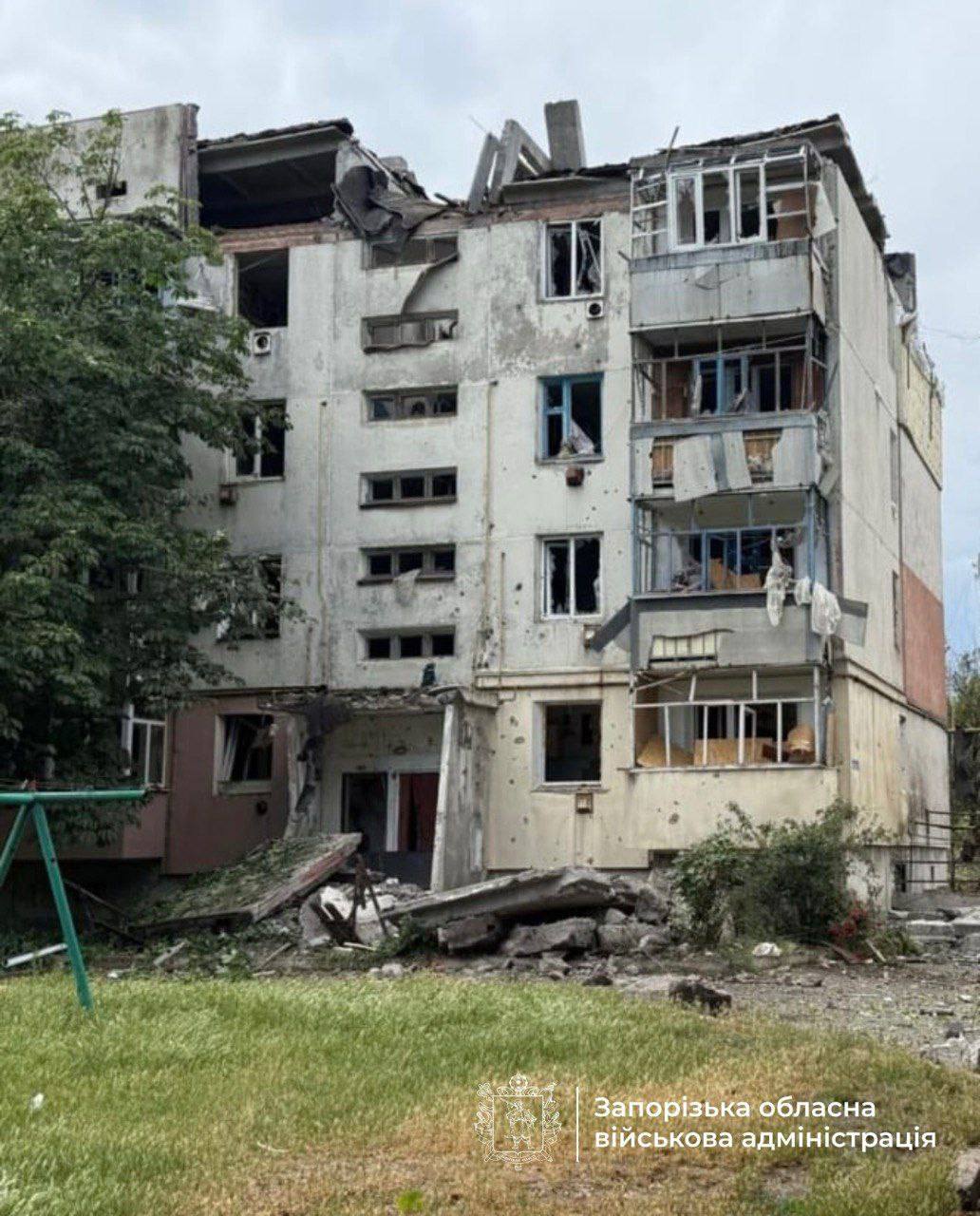 Російська армія атакувала прифронтове Гуляйполе, зруйновано багатоповерхівку.