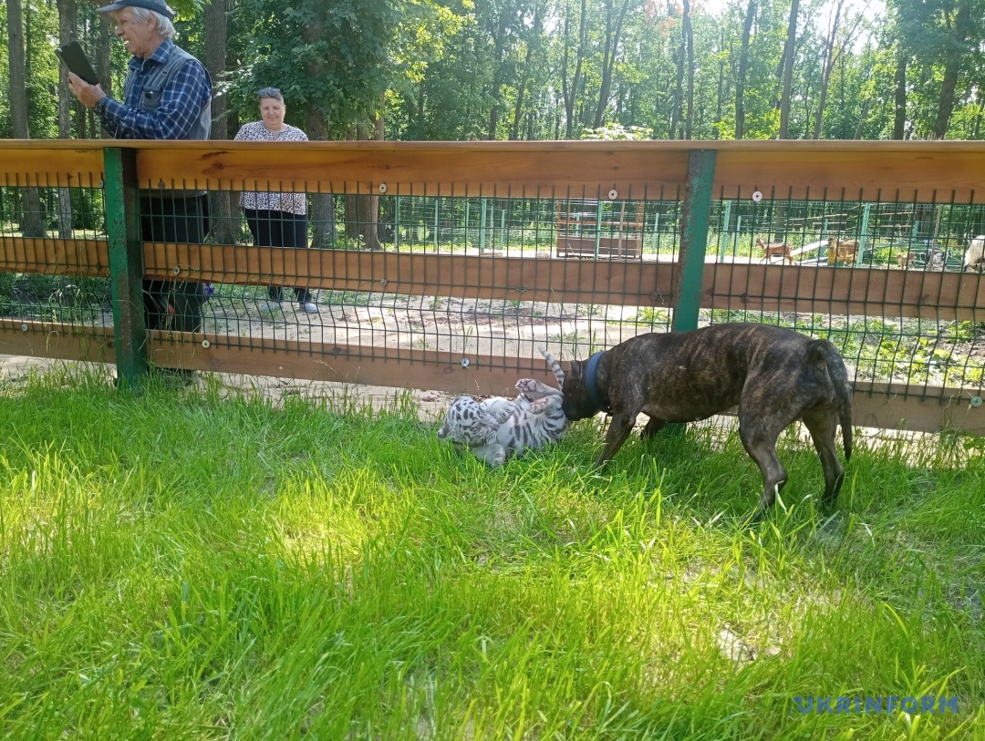 В Екопарку під Харковом розповіли, як собака доглядає білих тигренят