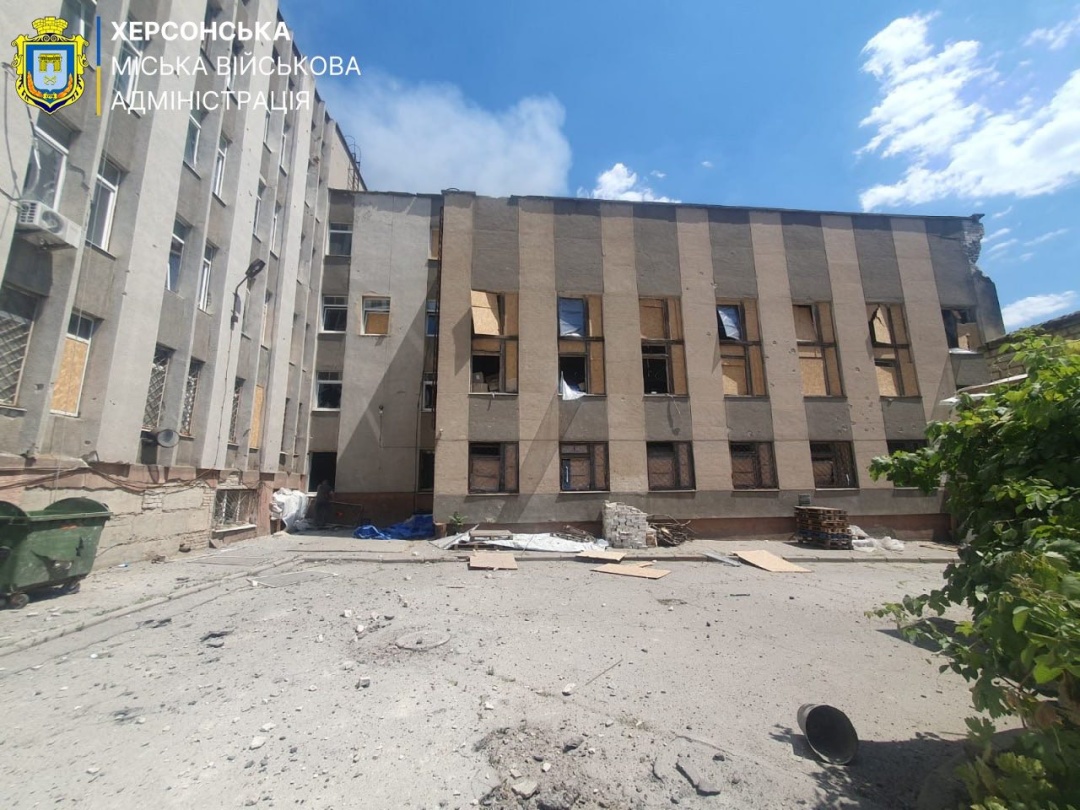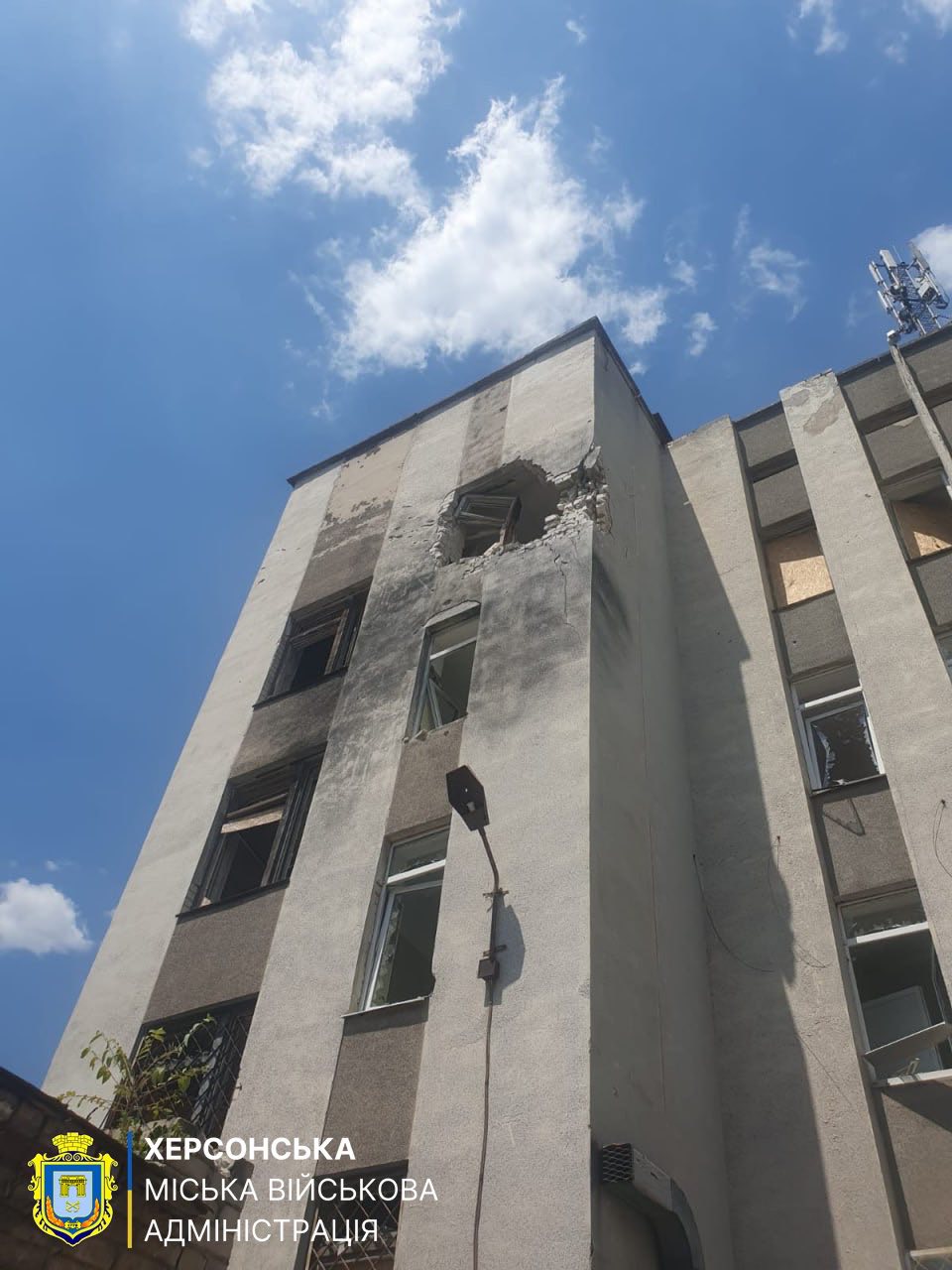 У Херсоні внаслідок обстрілу військами РФ середмістя пошкоджена адмінбудівля.