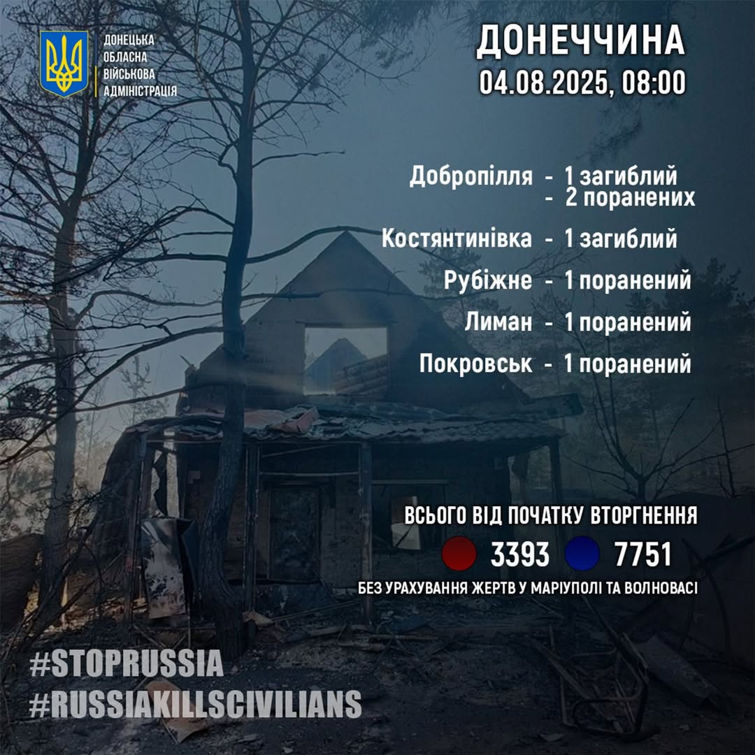 За його словами, росіяни вбили жителів Добропілля і Костянтинівки. Ще п'ятеро людей дістали поранення.