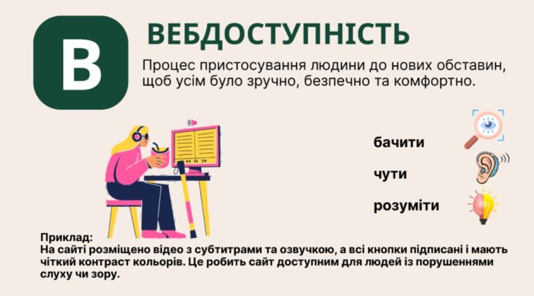 «Це вже наша друга спроба запуску абетки безбар’єрності. Перша була у квітні 2024 року, коли ми презентували абетку під час години безбар’єрності в ОВА, а зараз ми її вдосконалюємо. Абетка безбар’єрності – це просвітницький проєкт управління інформаційної діяльності та комунікацій з громадськістю ОВА, який завдяки звичайній абетці пояснює складні поняття», - зазначила Лиса.