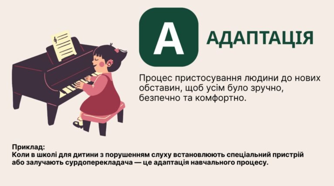 За її словами, кожна літера абетки – це окреме слово, яке трактує суть створення безбар’єрного середовища. У ній зібрані доступні пояснення та приклади, які допомагають сформувати у дітей і дорослих усвідомлення того, що комфортне суспільство – це середовище без перешкод для кожного.