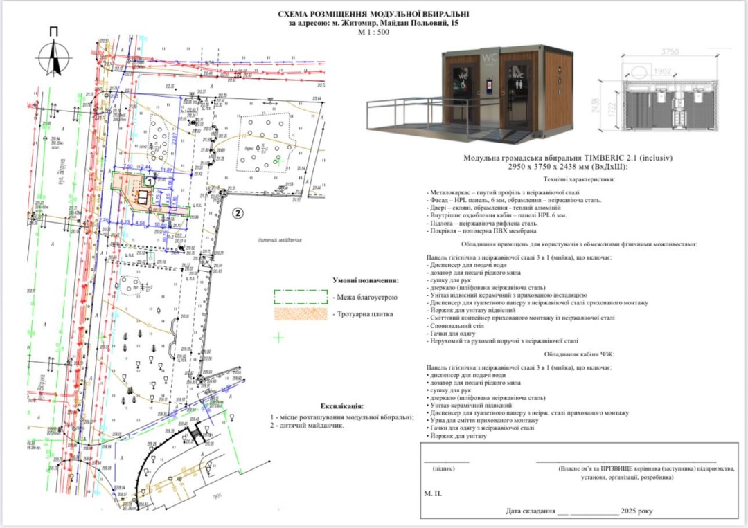 У Житомирі в межах облаштування безбар’єрного маршруту встановлять інклюзивну модульну вбиральню на майдані Польовому.