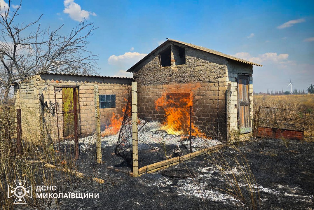 "Сьогодні вдень російські окупанти атакували Куцурубську громаду Миколаївського району Миколаївської області. Внаслідок ворожих обстрілів у с. Дмитрівка виникла пожежа сухої трави на відкритій території. Також в с. Іванівка виникло займання сухої трави та господарчих споруд", - йдеться у повідомленні.