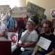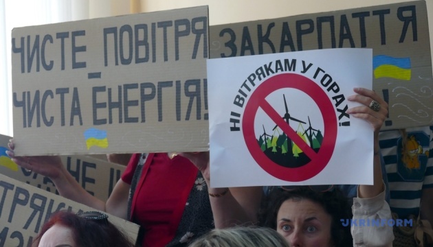 До будівлі суду сьогодні прийшли з транспарантами противники та прибічники забудови полонини. Люди тримали плакати "Ні вітрякам у горах!", "Закарпаття росте з вітром", "Чисте повітря - чиста енергія" та інші.