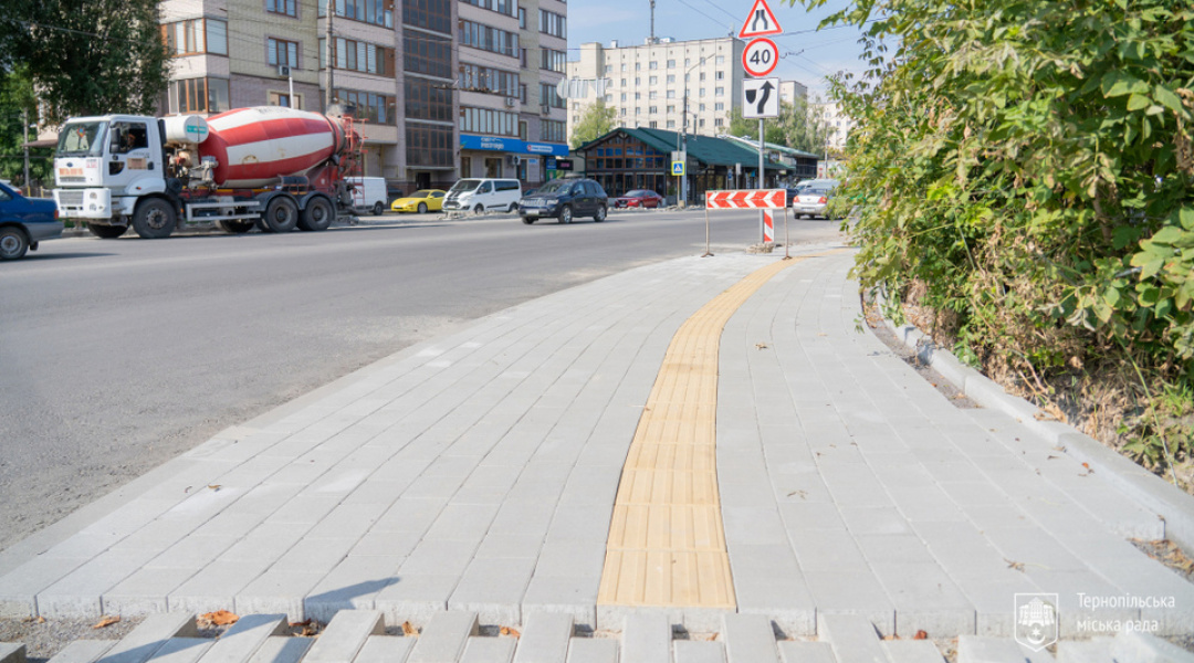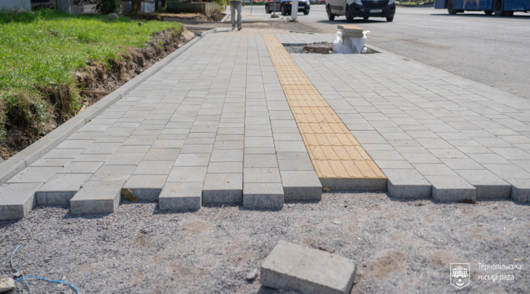 Під час облаштування тротуару враховуються сучасні стандарти безбар’єрності. Зокрема, передбачено пониження бордюрів на пішохідних переходах для зручного пересування, а також укладання направляючої тактильної плитки для орієнтації людей з порушеннями зору.