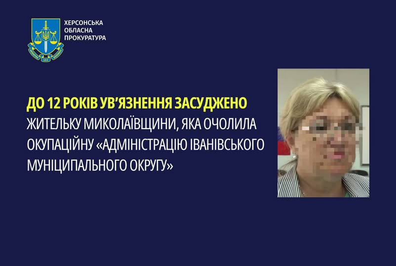 Прокурори у суді довели, що у 2023 році засуджена погодилася обійняти посаду так званого голови «адміністрації Іванівського муніципального округу» на тимчасово окупованій території Херсонщини.