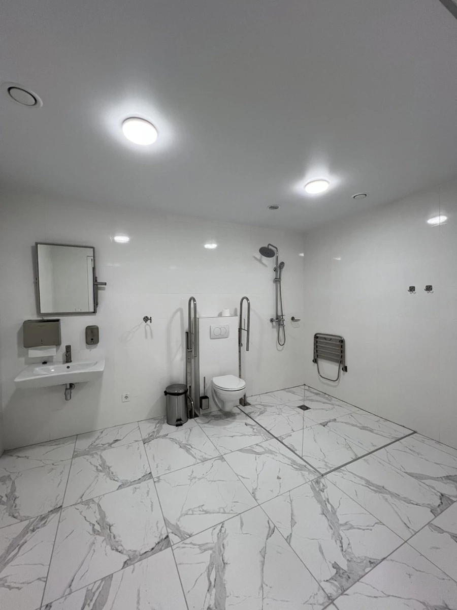 Також входи до будівлі мають інформаційні таблички з назвами кирилицею та шрифтом Брайля. У кожному відділенні створені санітарно-гігієнічні приміщення для осіб з інвалідністю з правильно розміщеним сантехнічним обладнанням.