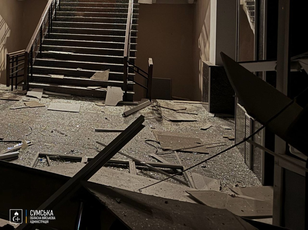 "Внаслідок ракетного удару рф по Сумській громаді близько 22:40 пошкоджені будівлі одного з навчальних закладів. Вибуховою хвилею пошкодженні фасади, вибиті вікна та двері", - йдеться у дописі.