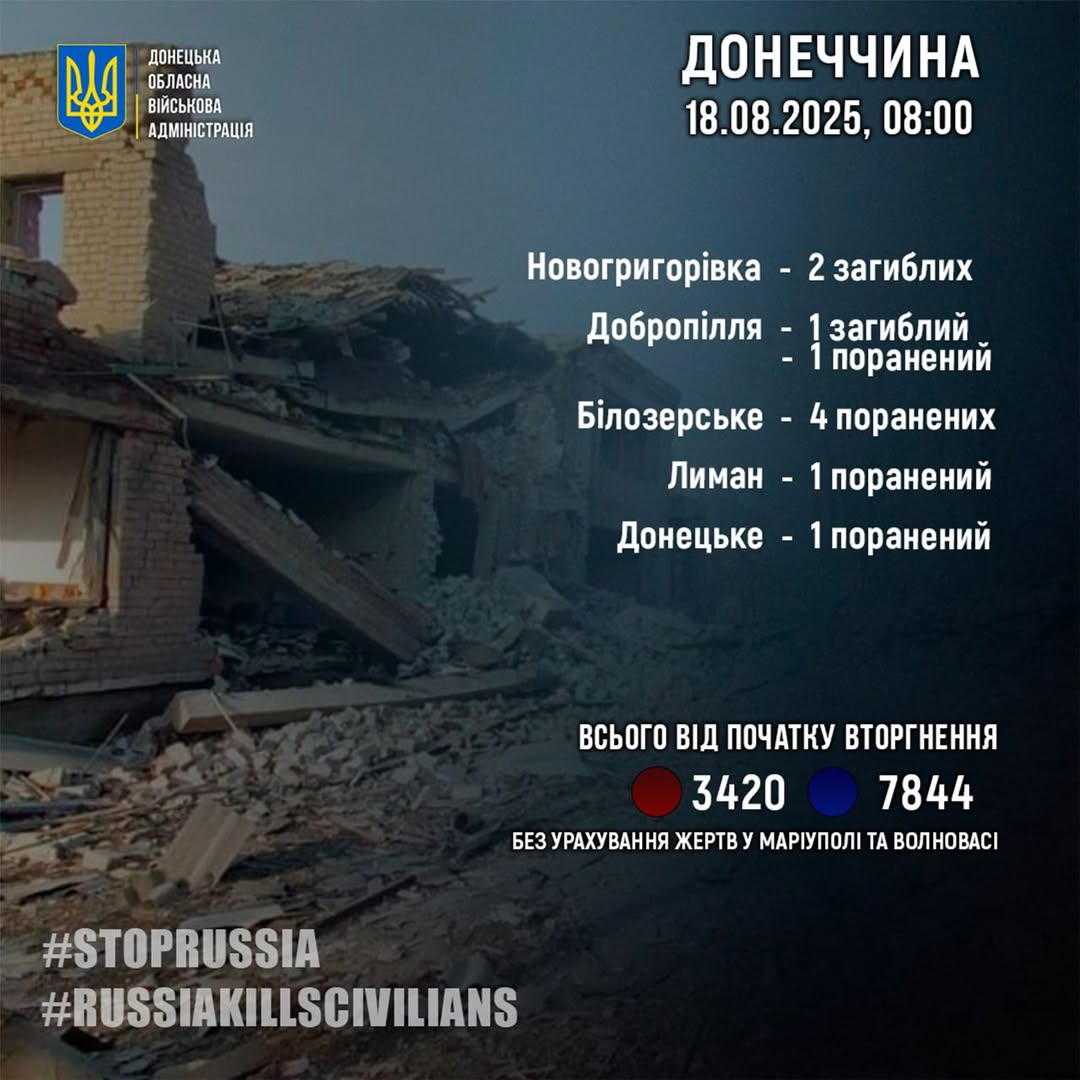 За його словами, росіяни вбили двох жителів Новогригорівки та одного жителя Добропілля. Ще семеро людей дістали поранення.
