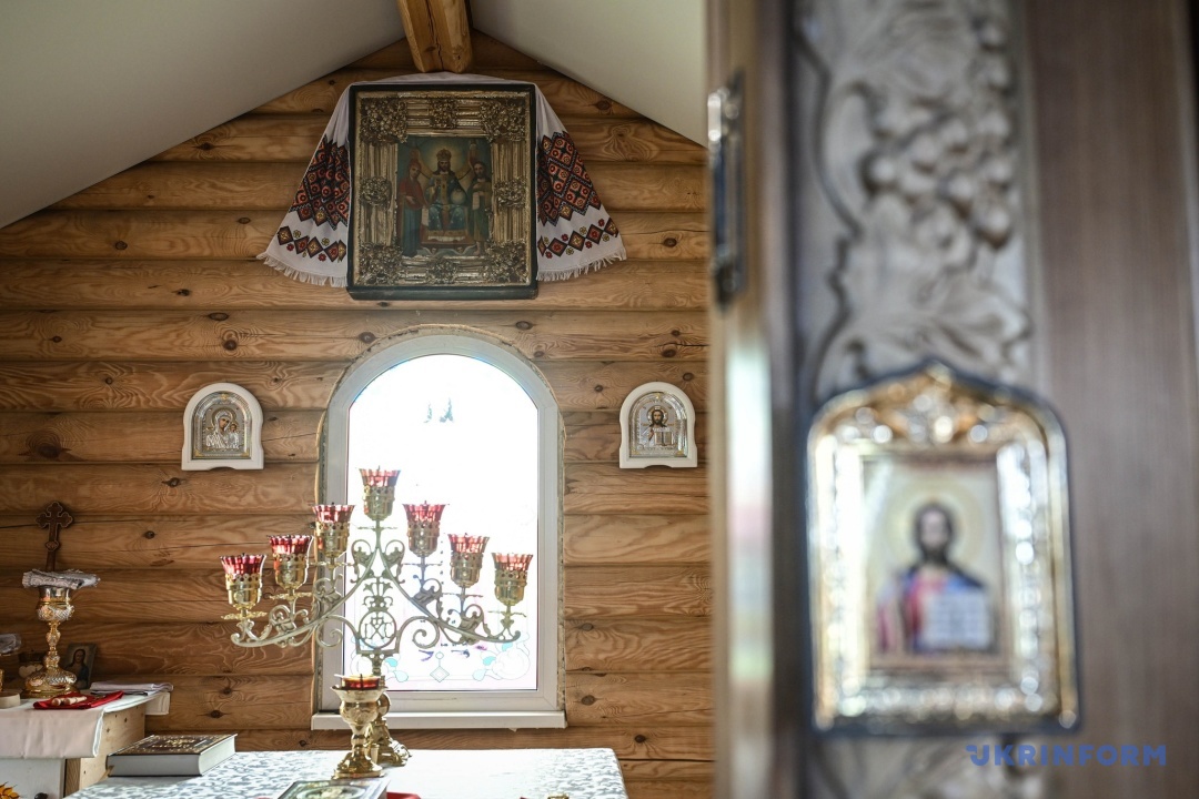 «Ми роздивлялися різні варіанти. Потім побачили один типовий проєкт, але там було одне віконечко і сама центральна частина храму на два метри коротша. Порадились з батюшкою та змінили проєкт. Замість одного вікна зробили два, і сама церква стала довша. Тепер в ній 60 людей нормально вміщується», – долучається до розмови брат Ірини, Анатолій Лисенко.