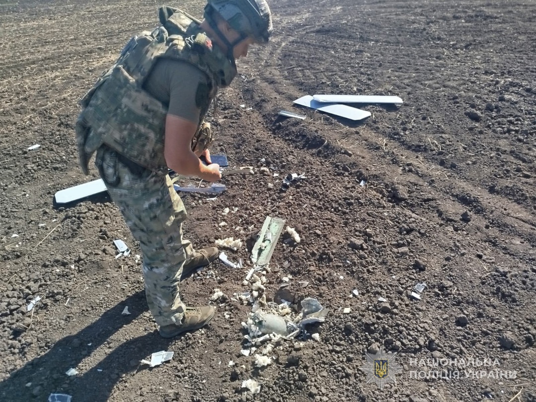 На місці падіння безпілотника вибухотехніки поліції оглянули уламки, провели знешкодження його бойової частини фугасно-уламкової дії, вивезли її у спеціально відведене місце та знищили шляхом підриву.