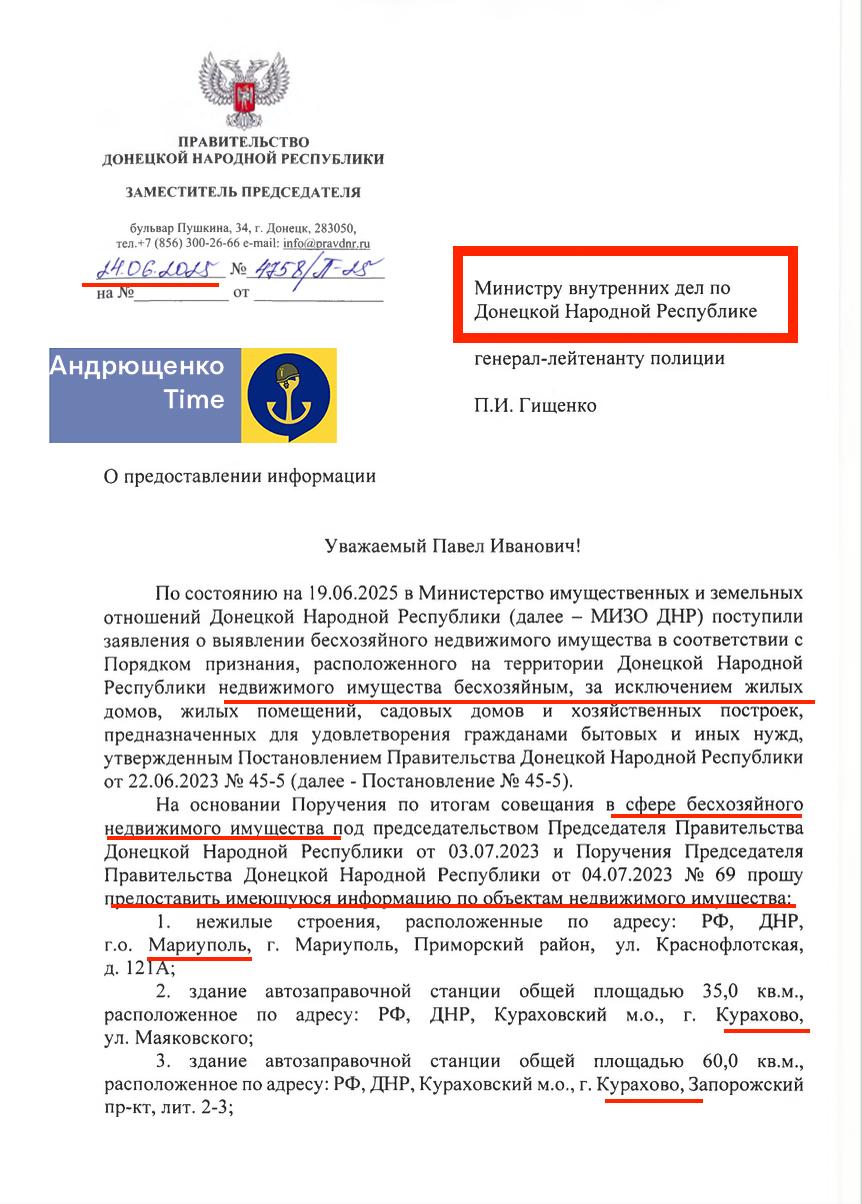 За його словами, спочатку окупаційна "влада" узяла АЗС на облік як безгоспне майно для націоналізації, а потім "урядовці ДНР" переоформили його на себе.