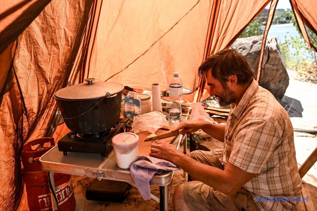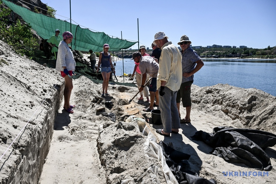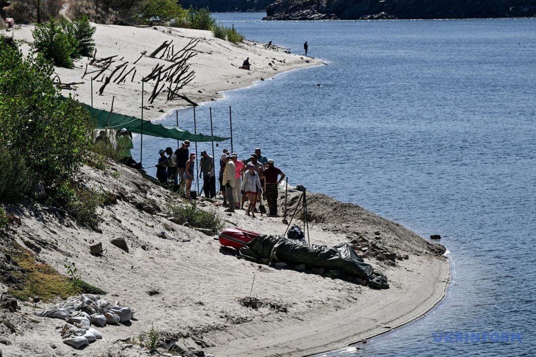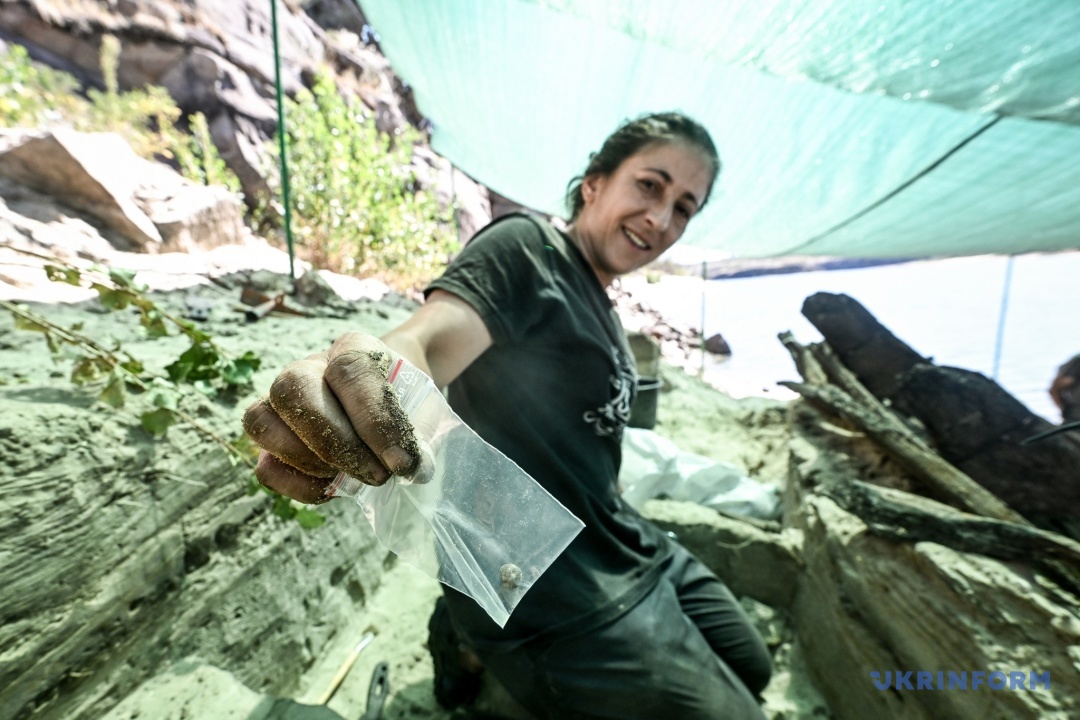 - Раніше ми розкопували на березі якісь поселення або ж знаходили та вивчали кораблі під водою. Тепер же, після підриву Каховської ГЕС, рівень води впав на п’ять метрів, і те, що ми тривалий час досліджували під водою, зараз виявилось на поверхні. Знахідки висихають і розсипаються. Їх негайно треба досліджувати, – говорить ветеран війни, гідроархеолог, завідувач відділу археології та охорони пам'яток Національного заповідника «Хортиця», кандидат наук Дмитро Кобалія.