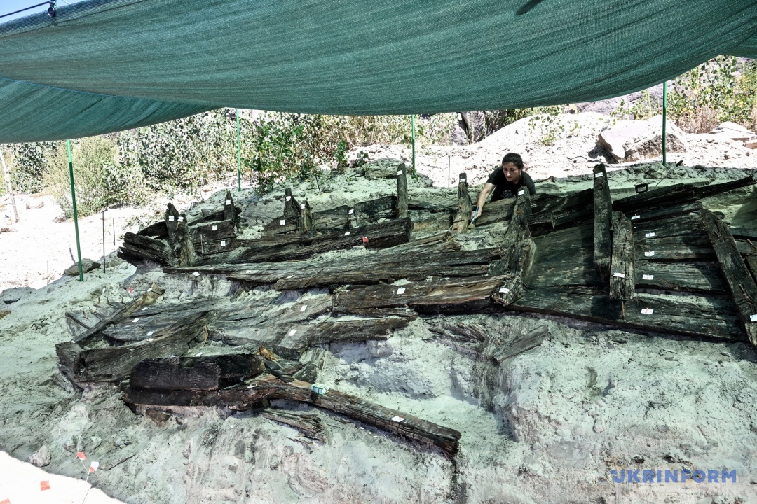 Експедиція стартувала 11 серпня. Журналістів Укрінформу запросили у табір, щоб ми на власні очі побачили, як досліджують деревʼяний човен, що століттями був захований під водою. Нині ж його доводилось буквально викопувати з піску.