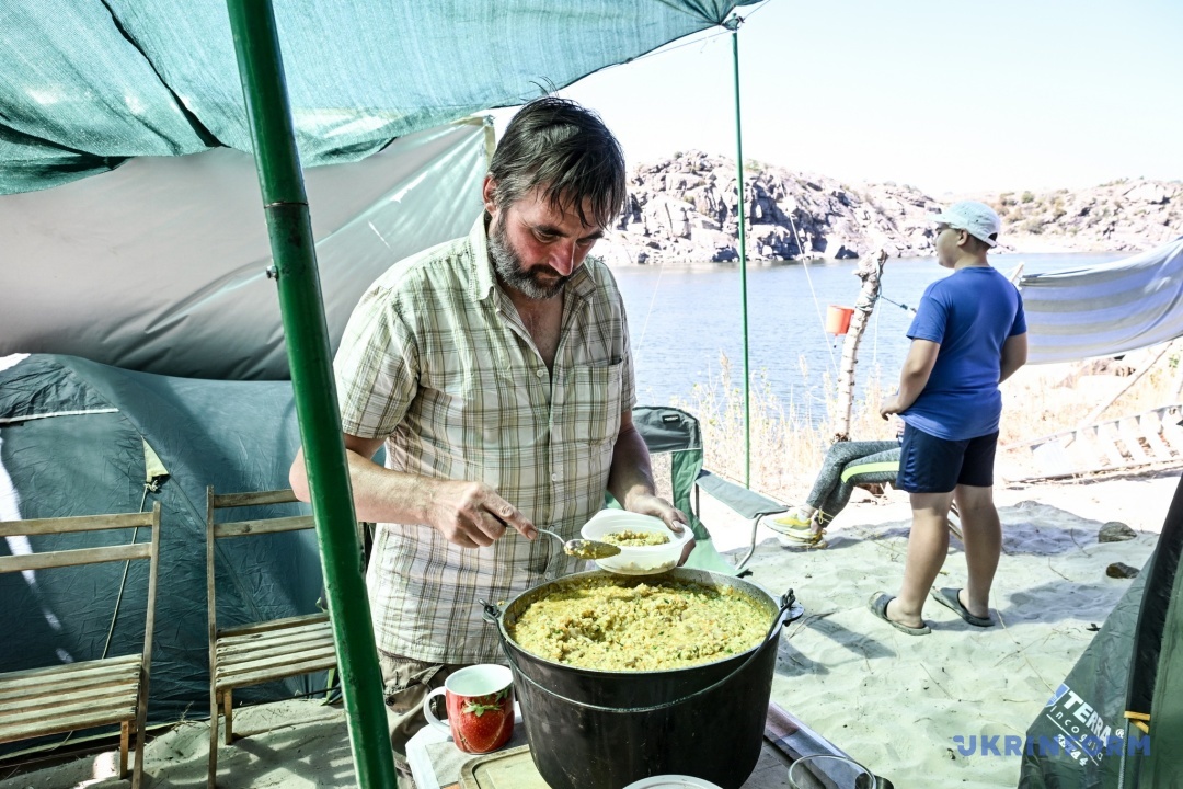 Тим часом у таборі приготували обід. Команду частували козацьким кулішем та домашніми консервованими огірочками.