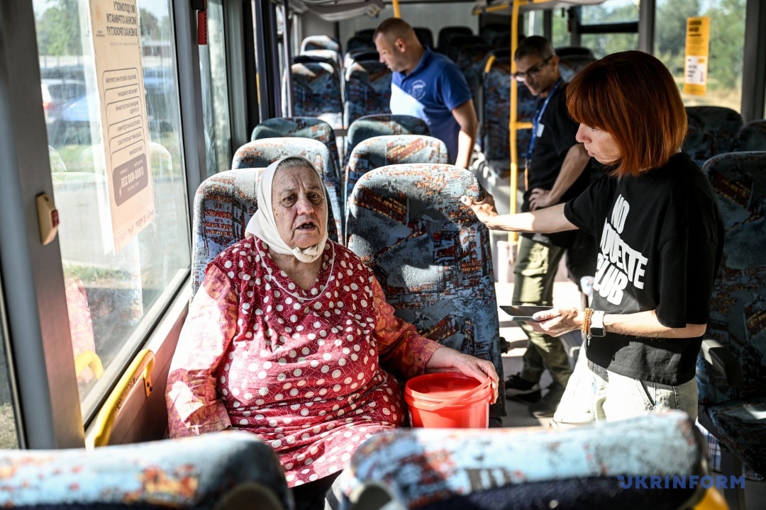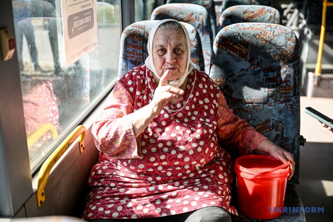 Поки розмовляли з Іриною, з автобуса вийшли всі, крім однієї жіночки – тієї, про яку казали, що їй потрібна допомога медиків. Заходимо в салон. Бачимо, що жінці стало легше. Знайомимося.